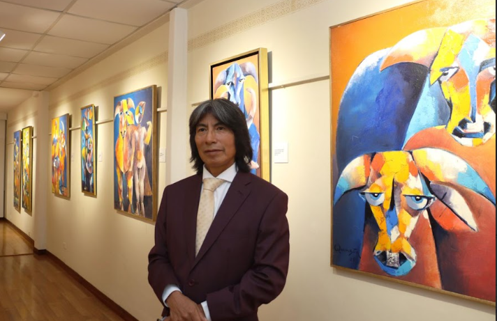 La expresión plástica de Quimbita conduce a esa dualidad en el arte figurativo, “tan propia y característica de un artista cargado de sentimiento familiar y humano. Nos muestra la cromática andina de un ser que nació en las elevadas montañas de la serranía del Ecuador. Por eso el color, la forma y ese sentimiento profundo e íntimo de sus personajes, que también sentimos muy cercanos en Perú”, asegura Diana Godoy, directora del MAD Gallery.